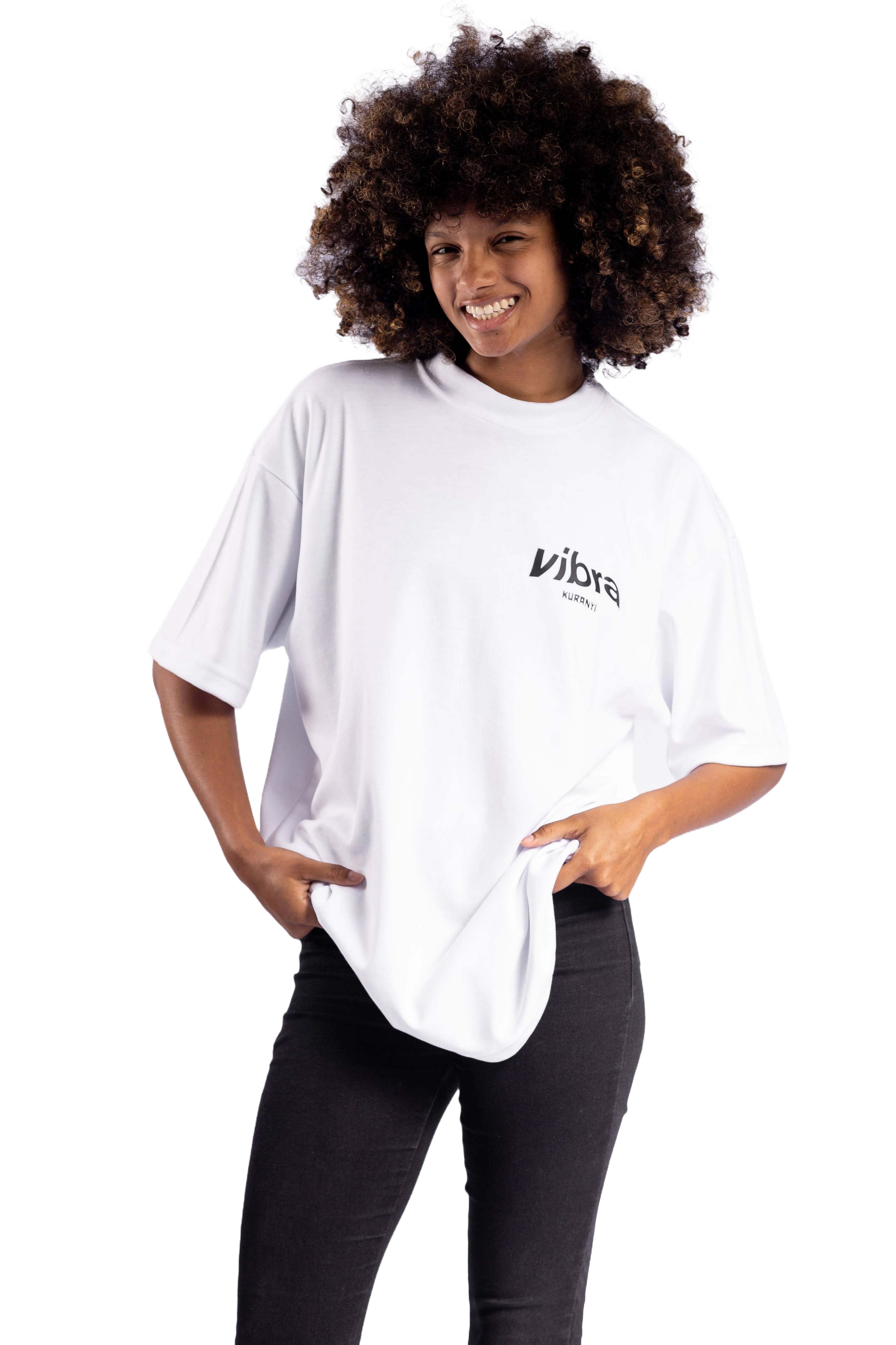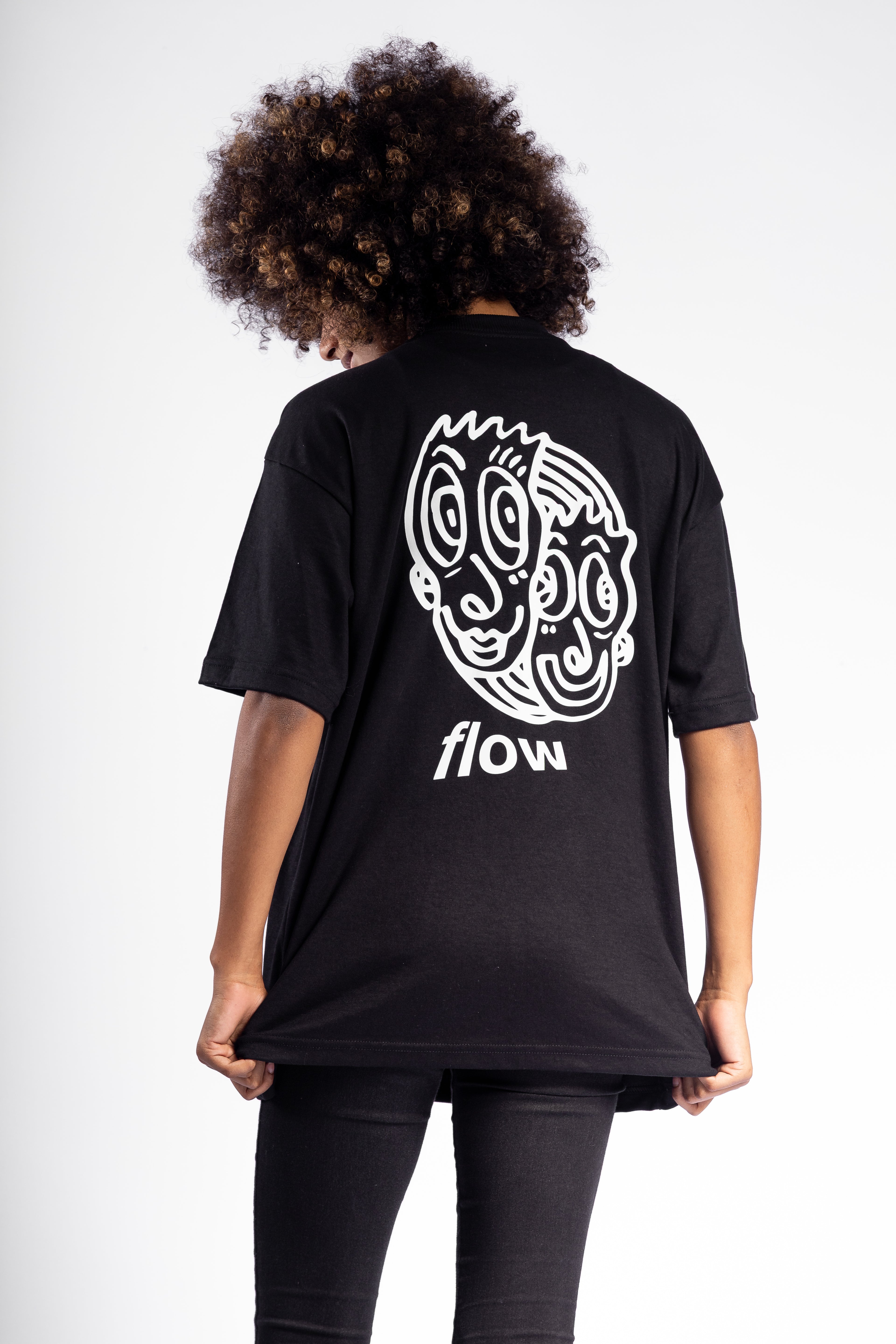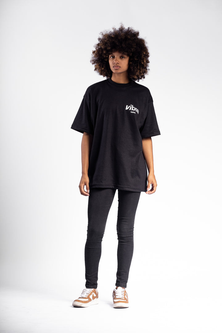Premium black cotton T-shirt with back print featuring Romulo Kuranyi’s new Vibra Faces.